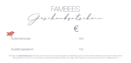 GeschenkgutscheinAnbieter:FAMBEESNormaler Preis Von 10,00 €Normaler PreisStückpreis / pro