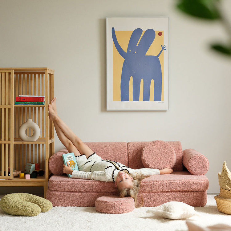Ein besonderes Highlight ist das Spielsofa „Teddy“ von Wigiwama, das nicht nur zum Sitzen und Kuscheln einlädt, sondern sich auch zum Kletter- und Spielmöbel umwandeln lässt – perfekt für aktive Kinder und kreative Spielideen. In Kombination mit einer Indoor-Rutsche in Giraffenform wird das Kinderzimmer im Handumdrehen zur Abenteuerwelt!