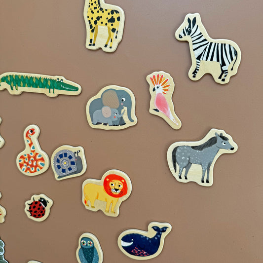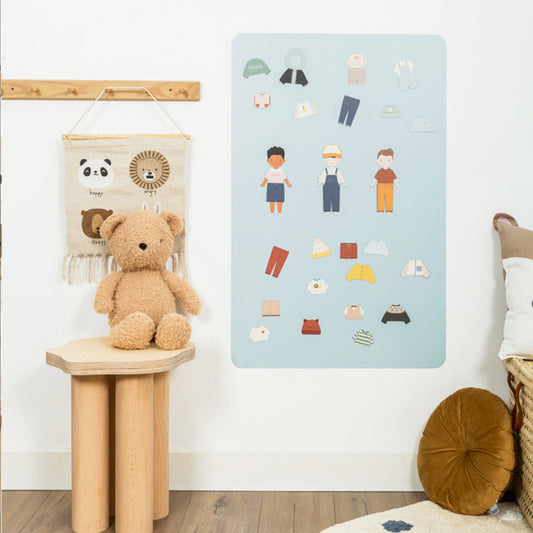 Dank der mitgelieferten oder separat erhältlichen Magnete in sanften Farbtönen sowie der thematischen Magnetsets wird jede Magnetwand zum interaktiven Spielplatz. So können Kinder mit den Holzmagneten vom Bauernhof oder aus der Savanne ihre eigene Welt erschaffen oder sich mit den Fahrzeug- und Sport-Sets kreativ austoben. Besonders beliebt sind auch die Dress-Up-Magnete, mit denen Mädchen und Jungen Figuren anziehen und gestalten können – ganz nebenbei werden dabei Feinmotorik und Fantasie gefördert.