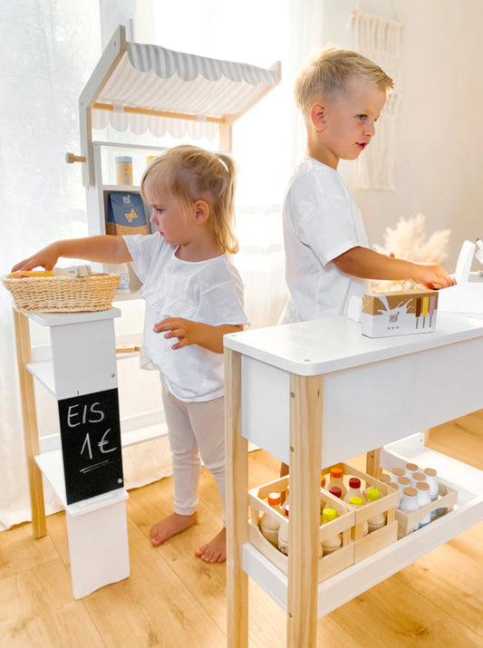 Kinder ab drei Jahren lieben Rollenspiele, bauen sich eigene Welten und schlüpfen gerne in neue Rollen. Unsere Kategorie Spielzeug ab 3 Jahren enthält dafür viele kreative Ideen. Besonders beliebt sind hier unsere realitätsnahen Spielsets wie der „Notarztrucksack“, der kleine Helfer in aufregende Rettungseinsätze schickt. Oder der „Arztkittel“, mit dem Kinder spielerisch Fürsorge zeigen und soziale Fähigkeiten entwickeln können. Für kleine Handwerker eignet sich der „Werkzeuggürtel aus Holzspielzeug“, der mit viel Liebe zum Detail gefertigt wurde.