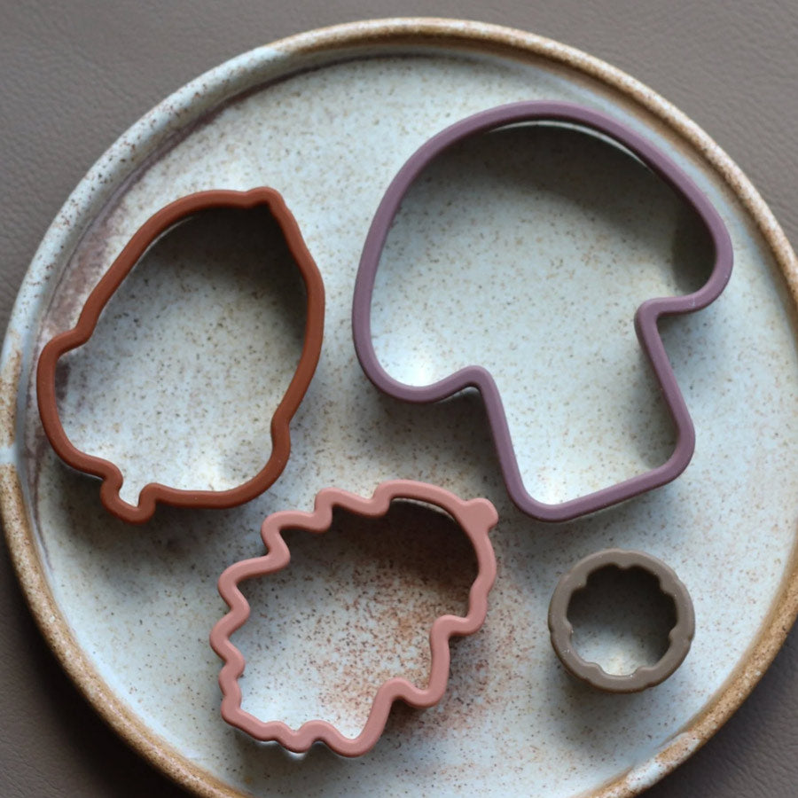 Mit dem Ausstechformen-Set Wald wird jede Mahlzeit und jede Backrunde zu einem kleinen Highlight. Ob fürs Lunchpaket, für Snacks zwischendurch oder beim gemeinsamen Plätzchenbacken – Pilz, Eichel, Blatt und die runde Form laden zu fantasievollem Spielen und Gestalten ein.