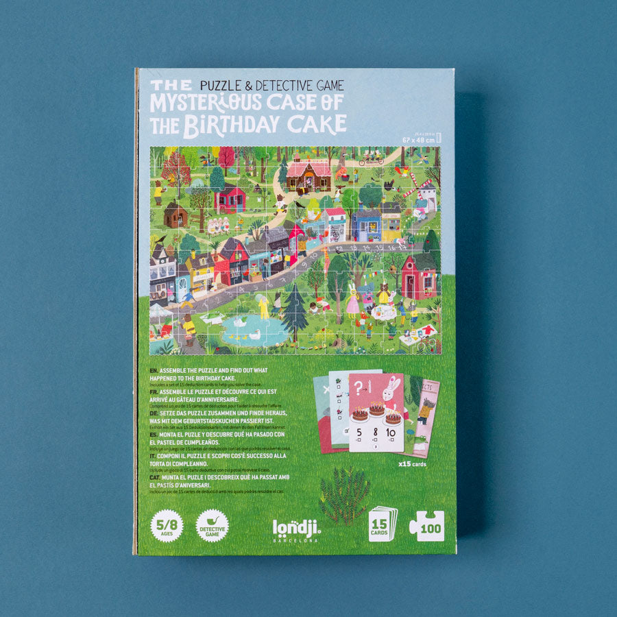 Bei diesem liebevoll illustrierten 100-Teile-Puzzle wartet ein geheimnisvoller Fall darauf, gelöst zu werden: Im Wald versteckt sich ein kleines Dorf voller Überraschungen – doch bei der Geburtstagsparty fehlt plötzlich der Kuchen! Was ist passiert? Wer weiß mehr? Welche Spur führt zur Lösung?