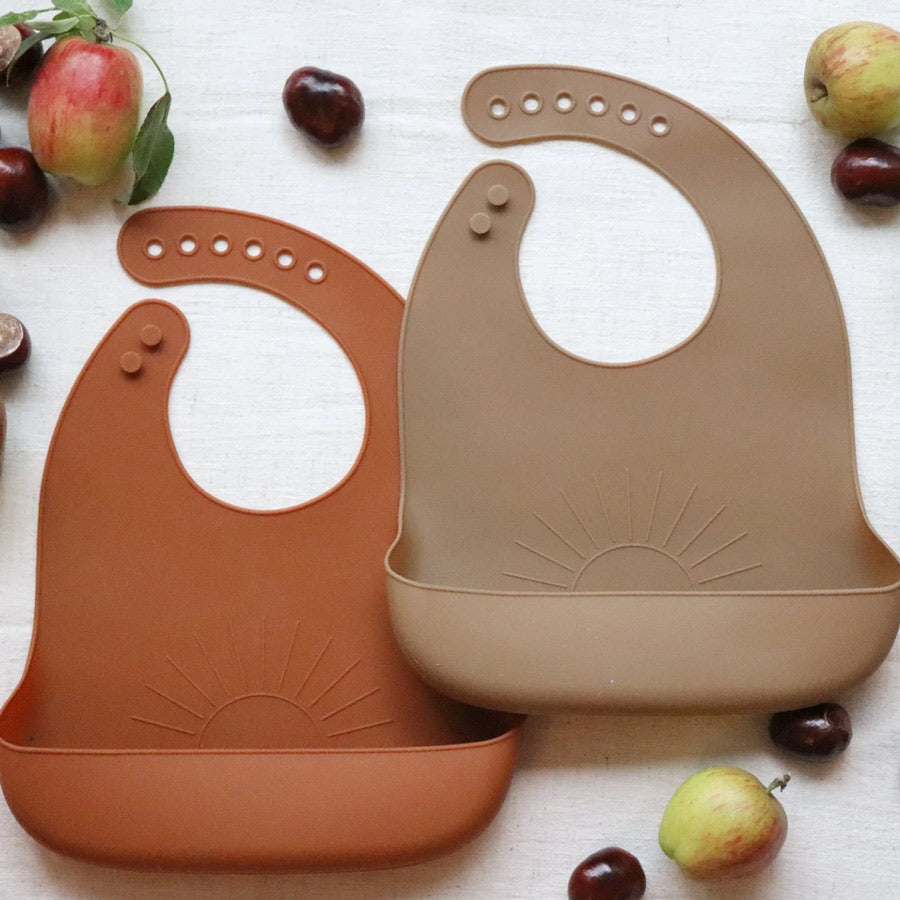Das 2er-Set Silikonlätzchen Sun Set von Lille Vilde kommt in den Farben Iron & Earth und schützt die Kleidung deines Kindes zuverlässig vor Kleckereien beim Essen. Die Lätzchen sind aus 100 % lebensmittelechtem, BPA-freiem Silikon gefertigt, weich, flexibel und besonders angenehm zu tragen.