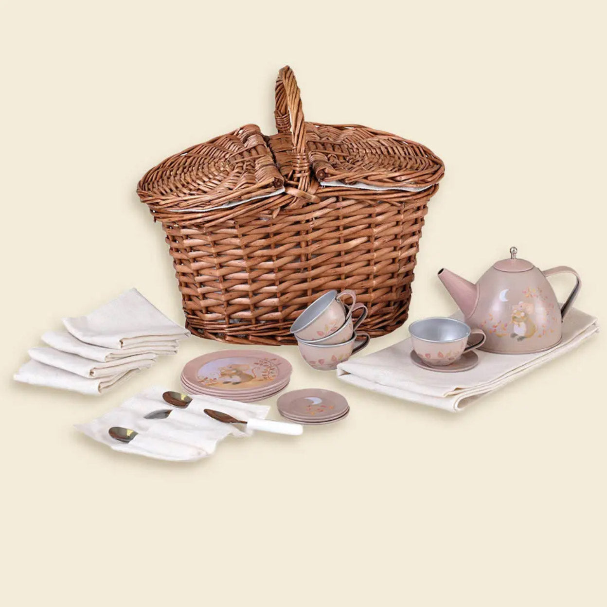 Komm, lass uns Picknicken gehen! - Zinn-Teeservice Maus im Korb – liebevolles Rollenspiel ab 3 Jahren